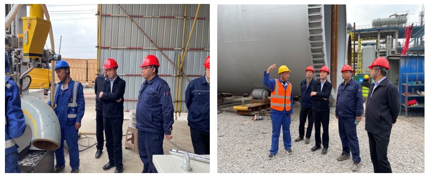 許緘濤還分別前往設(shè)備預(yù)制場、管道自動焊預(yù)制場,對最后一臺反應(yīng)器的制造進(jìn)程、組裝塔器“穿衣戴帽”進(jìn)程、管道預(yù)制自動焊等工作進(jìn)行調(diào)研。