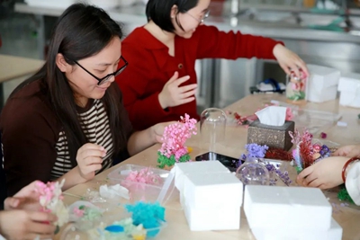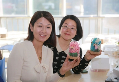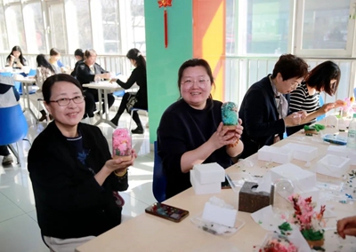 為增強慶祝活動的趣味性、挑戰性、協作性,組織開展手工制作“永生花”體驗活動。活動中,工作人員提前將材料進行分類準備好,并詳細講解“永生花”的制作流程和技巧。大家邊學邊交流經驗,以塑刀為針,以膠水為線,紛紛動起手來,傾力展示自己豐富的想象力和創造力,將工作中的細心、專心、耐心投入到“永生花”的制作上。經過個把小時,女職工們制作出了一朵朵精美的“永生花”,看著自己親手制作的作品,大家臉上洋溢著滿滿的成就感和幸福感?;馃岬姆諊矊⒋舜巍叭恕惫澔顒油葡蛄烁叱薄?/p>