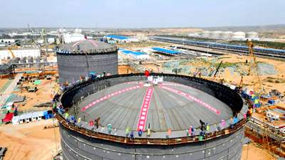 7月14日,由北京石油化工工程有限公司EPC總承包的延長(zhǎng)石油靖邊天然氣儲(chǔ)氣調(diào)峰及配套LNG項(xiàng)目?jī)膳_(tái)5萬(wàn)立方米大型液化天然氣儲(chǔ)罐穹頂氣頂升作業(yè)圓滿完成,標(biāo)志著外罐主體結(jié)構(gòu)建設(shè)完畢,全面轉(zhuǎn)入內(nèi)罐安裝階段,為項(xiàng)目后續(xù)建成中交奠定了堅(jiān)實(shí)基礎(chǔ)。