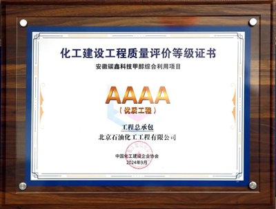 近日,由北京石油化工工程有限公司(簡(jiǎn)稱:北油工程)總承包的安徽碳鑫科技甲醇綜合利用項(xiàng)目乙醇聯(lián)合裝置,獲得2024年度,中國(guó)化工建設(shè)企業(yè)協(xié)會(huì)組織評(píng)選的化工建設(shè)工程質(zhì)量總承包優(yōu)質(zhì)工程和設(shè)計(jì)單位優(yōu)質(zhì)工程。